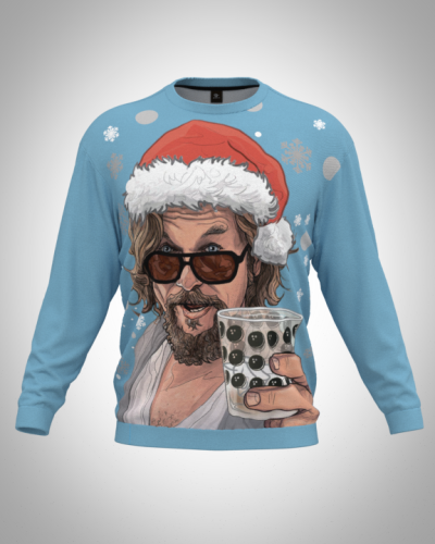 Свитшот мужской "Новогодний Лебовский" классический 3D, с круглым воротом