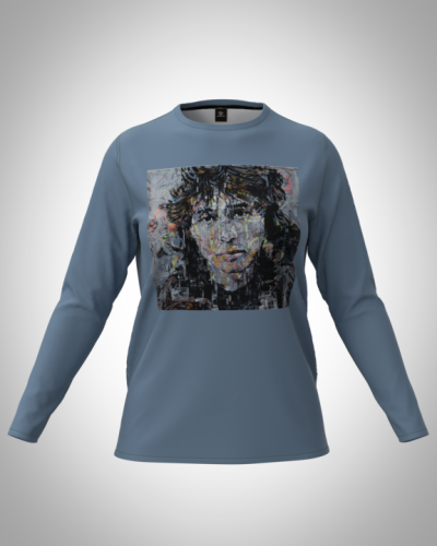 Лонгслив женский "Виктор Цой на голубом" классический 3D, туника, футболка с длинным рукавом