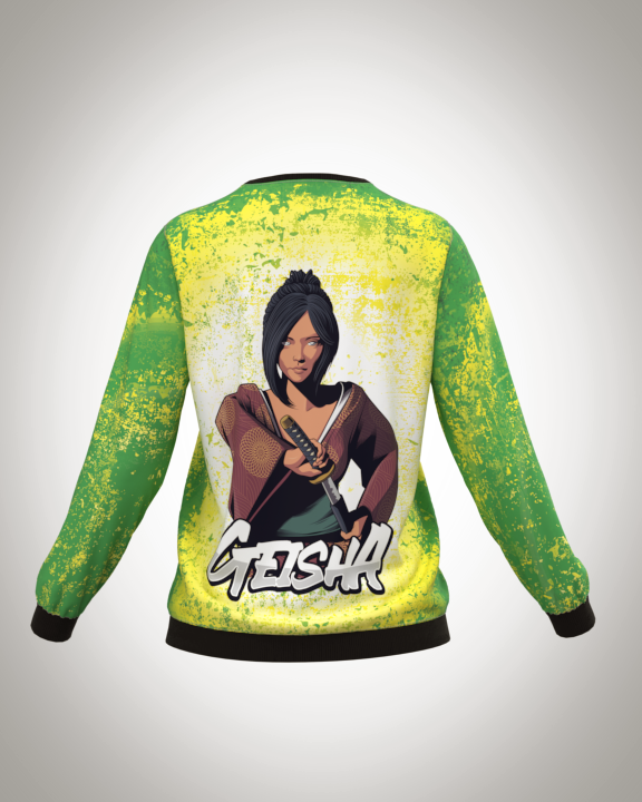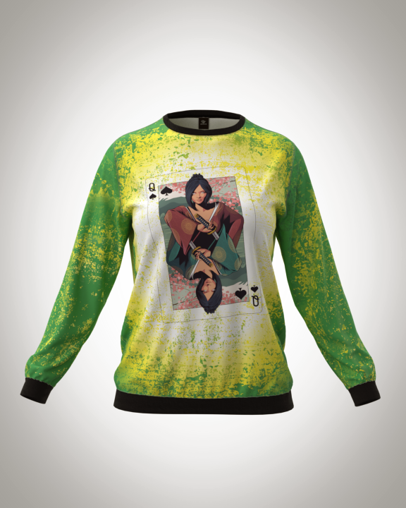 Свитшот женский "Карта гейши в зелени" классический 3D, с круглым воротом