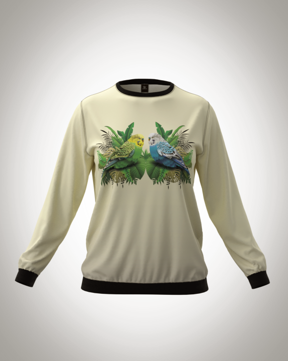 Свитшот женский "Попугаи" классический 3D, с круглым воротом